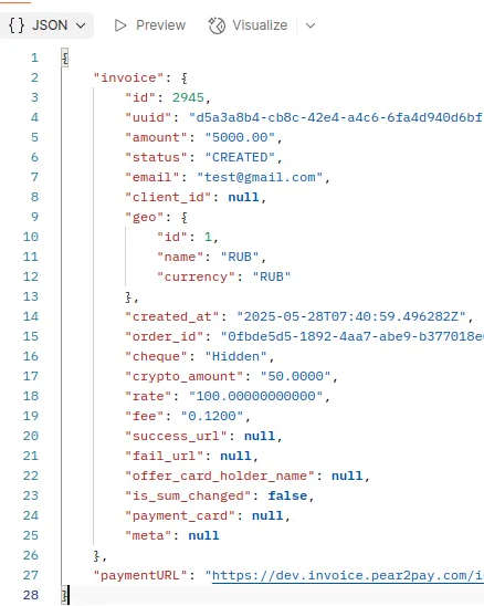 An invoice represents a financial transaction where a client sends a payment to a merchant. It serves as a formal record of the payment request and contains essential details such as the amount, payment method, and transaction status. In the Pear2Pay system, invoices are used to track and process incoming payments from clients to merchants.